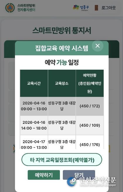 [인천광역신문] 최예준 기자 | 서울 성동구는 민방위 대비 태세 강화를 위해 성동구 소속 민방위 대원을 대상으로 ‘2026년 상반기 민방위 교육’을 실시한다고 밝혔다.