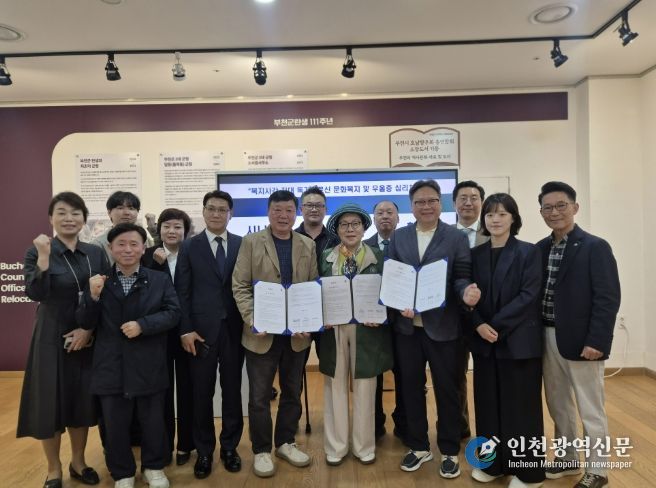 [인천광역신문] 최예준 기자 | 부천문화원과 ㈜시니어벤처협회인재개발원, 한국요양보호사중앙회는 4월 14일 오전 11시 부천문화원에서 노인복지 사각지대에 놓인 독거 정서취약계층의 우울감과 정서적 고립에 의한 심리치유와 찾아가는 문화복지향상과 고령사회의 지역문화복지 생태계 조성에 의한 문화향유 기반 확대를 위한 업무협약(MOU)을 체결했다.