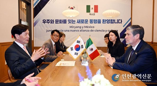 [인천광역신문] 최예준 기자 | 경남 밀양시는 15일 카를로스 페냐피엘 소토(Carlos Peñafiel Soto) 주한 멕시코 대사가 밀양을 방문해 과학·문화 분야 상호 교류 방안을 논의했다고 밝혔다.
