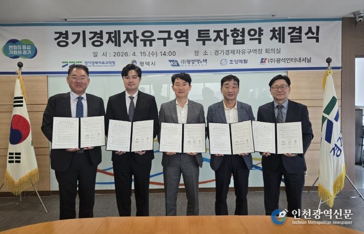 [인천광역신문] 최예준 기자 | 경기경제자유구역청은 15일 경기경제청 8층 회의실에서 평택시 및 자동차부품, 반도체, 화학 제조기업 5개사(㈜왕성이노텍, 조양메탈㈜, ㈜광석인터내셔날/그 외 2개 기업 서면 협약)와 평택 포승(BIX)지구 산업시설용지 투자협약을 체결했다.