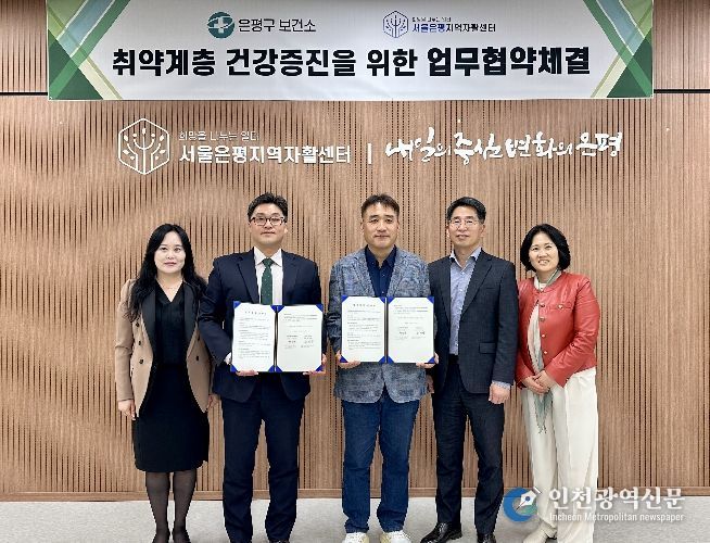 [인천광역신문] 최예준 기자 | 서울 은평구는 지난 14일 은평구 보건소와 서울은평지역자활센터가 지역사회 저소득 취약계층의 건강 증진 및 체계적인 건강관리를 위한 업무협약(MOU)을 체결했다고 밝혔다.