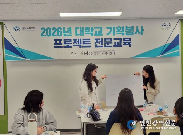 [인천광역신문] 최예준 기자 | 성북구 성북복지재단 자원봉사센터가 지난 12일 관내 대학생들이 참여한 가운데 ‘2026 대학교 기획봉사 프로젝트’ 사업 설명회와 기획 전문교육을 진행했다.