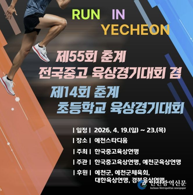 [인천광역신문] 최예준 기자 | 예천군은 오는 19일부터 23일까지 닷새간 예천스타디움에서 '제55회 춘계 전국 중·고 육상경기대회' 및 '제14회 춘계 전국초등학교 육상경기대회'를 개최한다고 밝혔다.