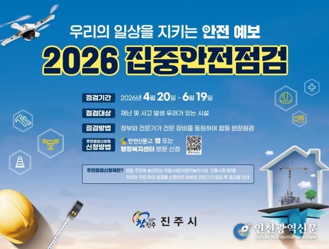 [인천광역신문] 최예준 기자 | 진주시는 시민의 생명과 재산을 보호하기 위해 오는 20일부터 6월 19일까지 관내 84곳의 시설물을 대상으로 ‘2026년 집중 안전점검’을 실시한다.