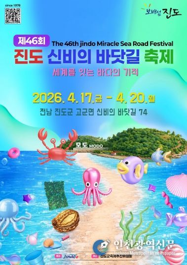 [인천광역신문] 최예준 기자 | ‘제46회 진도 신비의 바닷길 축제’가 4월 17일부터 4월 20일까지 고군면 신비의 바닷길 일원에서 개최된다.