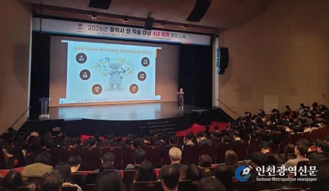 [인천광역신문] 최예준 기자 | 평택시는 지난 14일과 15일 이틀간 평택시 남부문화예술회관에서 6급 이하 전 직원을 대상으로 4대 폭력 예방 교육을 진행했다고 밝혔다.