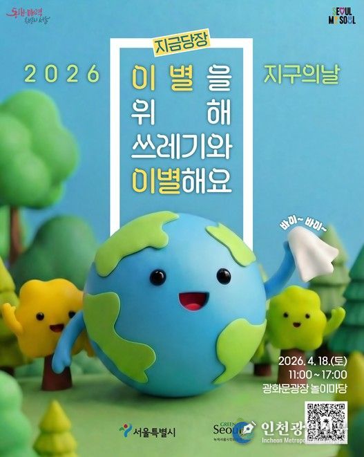[인천광역신문] 최예준 기자 | 서울시와 녹색서울시민위원회는 지구의 날(매년 4월 22일)을 맞아 18일 광화문광장에서 폐기물 감량을 주제로 ‘2026 지구의 날 기념행사’를 개최한다.