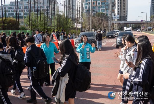 [인천광역신문] 최예준 기자 | 용혜인 국회의원(기본소득당 안산시지역위원장)이 16일 이른 아침 안산 해솔초등학교 정문 앞에서 등굣길 교통안전지도에 참여하고, 이어 안산그랑자이 2차 카페테리아 맘스라운지에서 해솔초 학부모들과 현장 간담회를 열어 교육 현안을 청취했다. 이 자리에는 기본소득당 홍순영, 서태성 안산시의원 후보도 함께 했다.