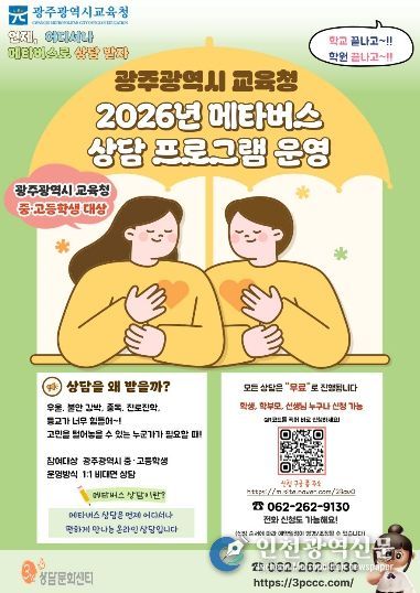 [인천광역신문] 최예준 기자 | 광주시교육청은 학생들의 심리·정서를 더욱 촘촘하게 살피기 위해 ‘2026년 메타버스 상담 프로그램’을 개편 운영한다.