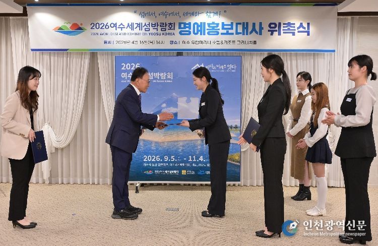 [인천광역신문] 최예준 기자 | 2026여수세계섬박람회 조직위원회는 4월 16일 여수 유탑 마리나 호텔&리조트 그리니치홀에서 ‘2026여수세계섬박람회 명예 홍보대사 위촉식’을 개최하고, 각 분야를 대표하는 18인을 명예 홍보대사로 위촉했다.