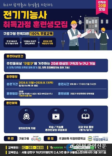 [인천광역신문] 최예준 기자 | 구로구가 전기기능사 취득 과정 훈련생을 5월 29일까지 모집한다.