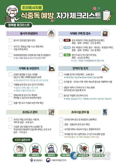 또 조리 종사자들을 대상으로 개인 위생 관리 수칙을 준수하고, 급식·배식 단계별 위생관리 요령, 대량 조리 시 주의 사항 등을 반드시 지켜달라고 했다.