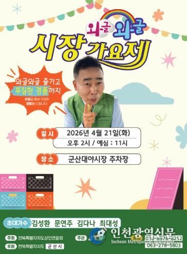 [인천광역신문] 최예준 기자 | 전통시장과 지역 상권에 활력을 더하는 ‘와글와글 시장가요제’가 군산 대야전통시장에서 열린다.
