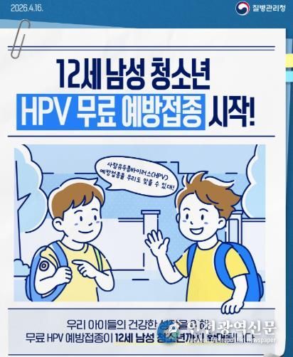 [인천광역신문] 최예준 기자 | 통영시는 오는 5월 6일부터 12세 남성 청소년(2014년생)을 대상으로 사람유두종바이러스(Human Papillomavirus, HPV) 백신 국가예방접종 지원사업을 새롭게 시행한다고 밝혔다.