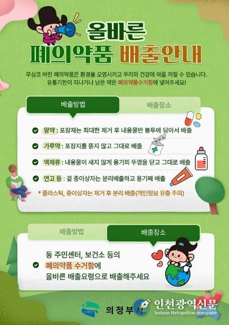 [인천광역신문] 최예준 기자 | 의정부시는 일상생활에서 발생하는 유해 폐기물인 폐의약품을 안전하게 수집‧처리하기 위해 관내 동 주민센터와 공동주택 등 총 31개소에 ‘폐의약품 수거함’을 설치했다.