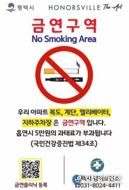 평택보건소 관계자는 “금연아파트는 주민들이 스스로 건강한 생활터전을 만들겠다는 약속의 결과물”이라며, “앞으로도 금연아파트 지정을 지속적으로 확대하여 간접흡연 걱정 없는 『금연도시 평택!』을 실현해 나가는 데 최선을 다하겠다”고 전했다.