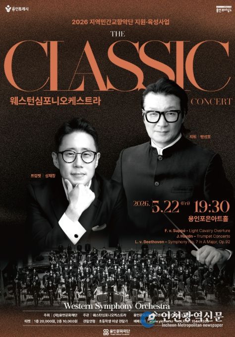 [인천광역신문] 최예준 기자 | 용인문화재단은 오는 5월 22일 오후 7시 30분, 용인포은아트홀에서 기획공연 '콘서트 'The 클래식''을 개최한다. 이번 공연은 ‘2026년 지역민간교향악단 지원육성사업’의 일환으로 진행되며, 세대를 아우르는 클래식 명곡들을 통해 시민들에게 클래식의 매력을 가까이에서 느낄 수 있도록 마련됐다.