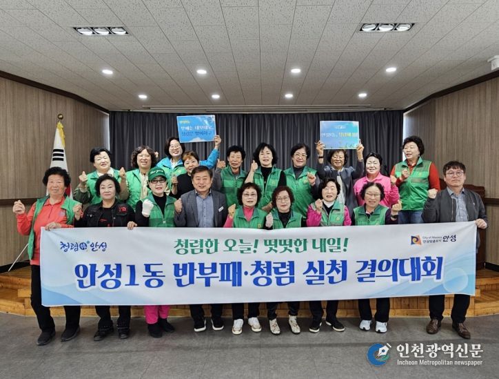 [인천광역신문] 최예준 기자 | 안성시 안성1동은 4월 16일 새마을지도자 안성1동 부녀회를 중심으로 ‘청렴해 봄’ 릴레이 청렴결의대회를 이어가며, 생활 속 청렴 실천 확산과 외부청렴도 향상에 나섰다.