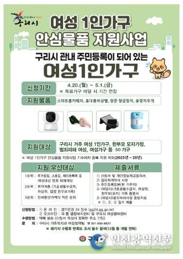 구리시 관계자는 “단순한 물품 지원을 넘어 시민들이 일상에서 심리적 안정을 느낄 수 있는 환경을 만드는 것이 이번 사업의 핵심”이라며, “앞으로도 지속적인 정보 수집과 제도 보완을 통해 더욱 촘촘한 안전망을 구축해 나가겠다.”라고 밝혔다.