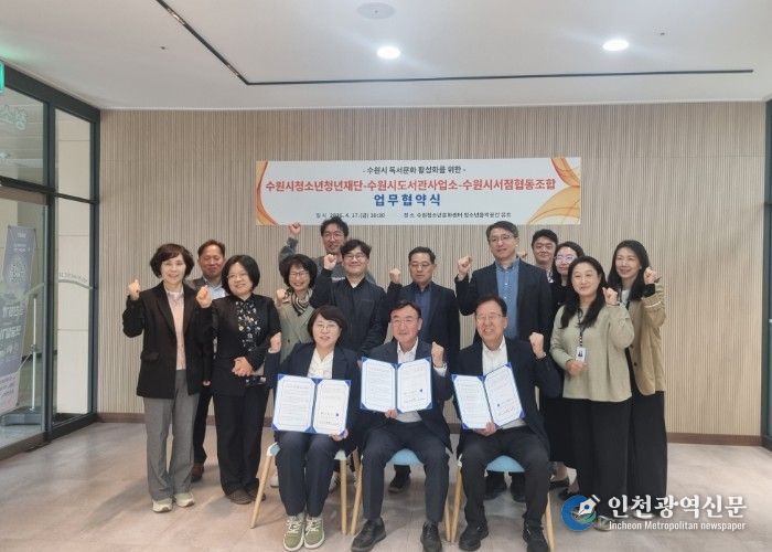 [인천광역신문] 최예준 기자 | 수원시 도서관사업소와 수원시청소년청년재단, 수원시서점협동조합이 지역 독서문화 활성화와 시민 독서활동 증진을 위해 협력하기로 했다.