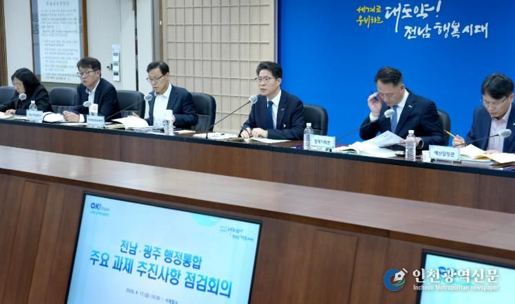 [인천광역신문] 최예준 기자 | 전라남도는 17일 도청 서재필실에서 전남·광주 행정통합 주요 과제 추진상항 점검회의를 열어 오는 7월 1일 출범하는 전남광주통합특별시의 성공적 탄생에 총력을 기울이기로 했다.