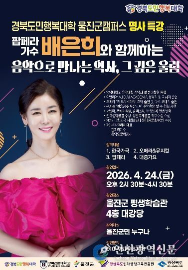 [인천광역신문] 최예준 기자 | 울진군은 오는 4월 24일 울진군 평생학습관에서 ’경북도민행복대학 울진군캠퍼스 명사특강‘ 을 개최한다.