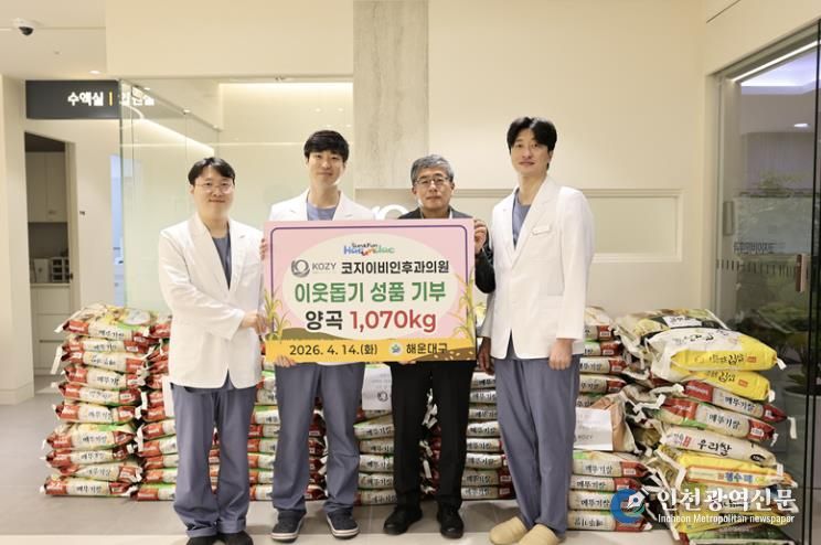 [인천광역신문] 최예준 기자 | 코지이비인후과의원이 개원 축하 화환 대신 받은 쌀 1,070kg을 어려운 이웃에게 전해달라며 14일 해운대구에 기탁했다.