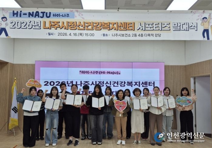 [인천광역신문] 최예준 기자 | 전남 나주시가 지역사회 정신건강 인식 개선과 생명존중 문화 확산을 위해 시민 참여형 서포터즈를 출범시키고 온오프라인 홍보 활동을 본격화했다.