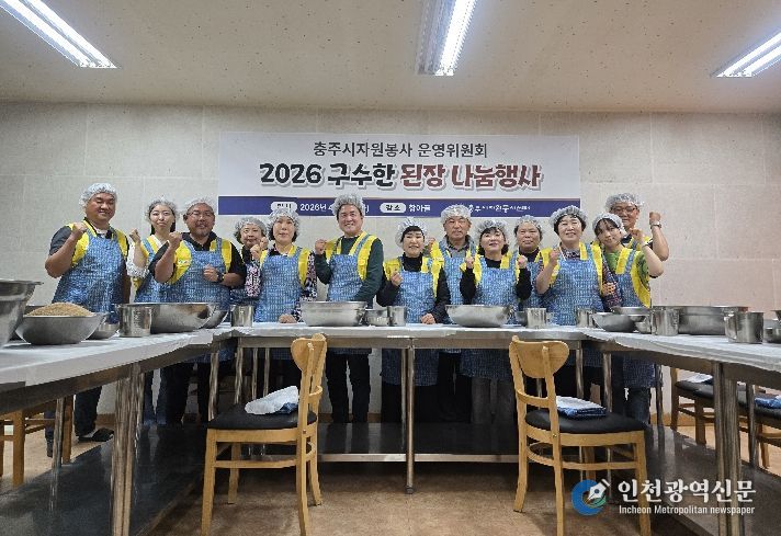 [인천광역신문] 최예준 기자 | 충주시자원봉사운영위원회(위원장 박영찬)는 지난 17일, 충주 항아골(대표 김명숙)에서 지역 내 소외계층의 건강한 식생활 지원을 위한 ‘2026 구수한 된장 나눔’ 행사를 가졌다.