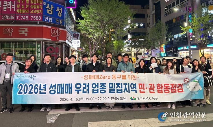 [인천광역신문] 최예준 기자 | 대구 동구청은 지난 16일, 신천동 동대구복합환승센터 일대에서 성매매 우려 업소를 대상으로 민·관 합동 야간 점검과 홍보 캠페인을 실시했다.