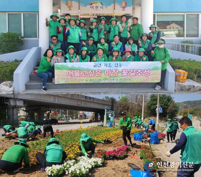 [인천광역신문] 최예준 기자 | 마장면 새마을남·녀지도자협의회(회장 지윤정, 이희자)는 4월 18일) 새봄맞이 아름 다운 마을 가꾸기를 위하여 관내 도로변 및 쌈지공원 등에 계절 페츄니아, 메리골드, 마가렛 등의 봄꽃묘를 식재하며 마을 곳곳에 생기를 더했다. 또한, 덕평로, 오천로 등 주요 대로변을 중심으로 가로화분 및 화단에 꽃을 식재하여 화사한 봄의 시작을 알렸다.