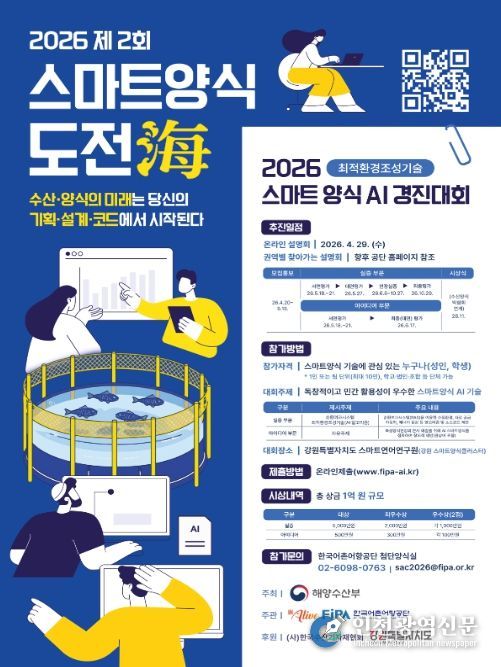 [인천광역신문] 최예준 기자 | 해양수산부와 한국어촌어항공단(이사장 홍종욱)은 4월 20일부터 5월 15일까지 ‘제2회 스마트양식 도전해(海) 경진대회’의 공모를 실시한다고 밝혔다.