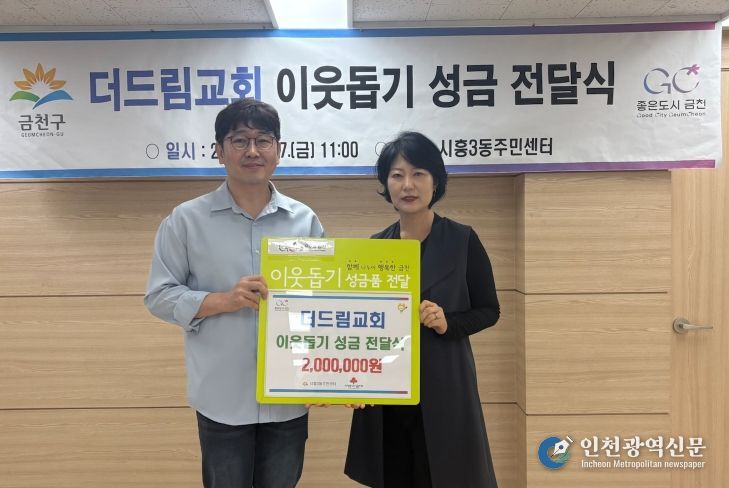 [인천광역신문] 최예준 기자 | 금천구는 지난 17일 시흥3동에 소재한 더드림교회에서 관내 저소득층을 위해 성금 200만 원을 기부했다고 밝혔다.