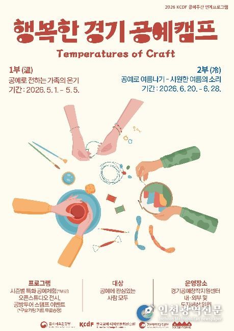 [인천광역신문] 최예준 기자 | 한국도자재단이 오는 5월 1일부터 경기공예창작지원센터(여주) 일원에서 체험·전시·이벤트를 결합한 참여형 프로그램 ‘2026 행복한 경기 공예 캠프’를 개최한다.