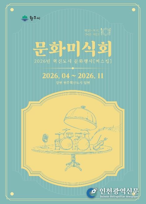 [인천광역신문] 최예준 기자 | 원주시는 오는 21일 낮 12시, 건강보험심사평가원 1사옥 앞 야외 공연을 시작으로 ‘2026년 혁신도시 문화미식회’의 막을 올린다. 이어 25일 오후 2시에는 혁신도시 미리내사거리 분수광장에서 버스킹 공연을 진행한다.