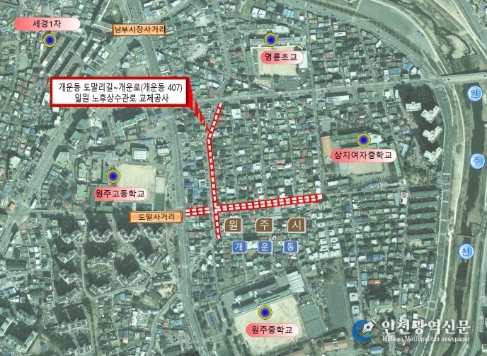 [인천광역신문] 최예준 기자 | 원주시상하수도사업소는 깨끗한 수돗물 공급을 위해 5월부터 ‘개운동 도말리길-개운로 일원 노후상수관 교체공사’를 추진한다.