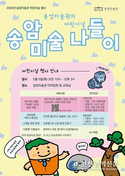 [인천광역신문] 최예준 기자 | 인천광역시 송암미술관은 5월 5일 어린이날을 맞아 체험행사 '송암 미술 나들이'를 개최한다고 밝혔다.
