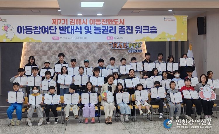 [인천광역신문] 최예준 기자 | 김해시는 지난 18일 시청 대회의실에서 아동의 참여권이 실현되는 아동친화 도시 조성을 위한 ‘제7기 아동참여단 발대식 및 아동 놀권리 증진 워크숍’을 개최했다고 밝혔다.