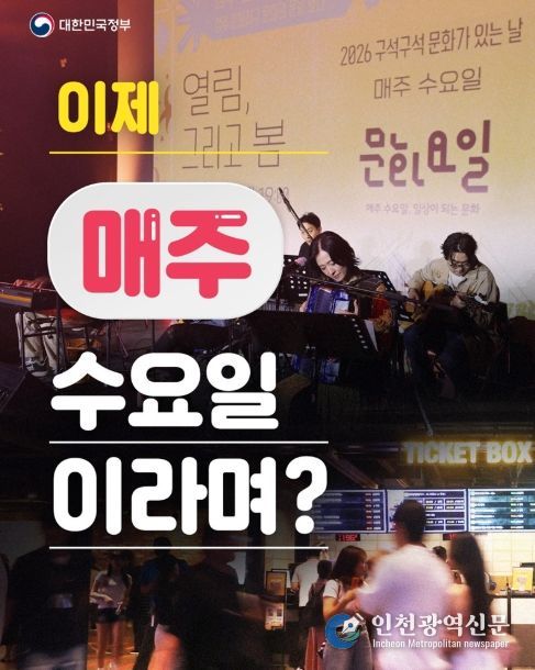 [인천광역신문] 최예준 기자 | 더 많은 분들이 일상에서 문화를 누리시도록 각종 혜택을 드리는 문화가 있는 날.