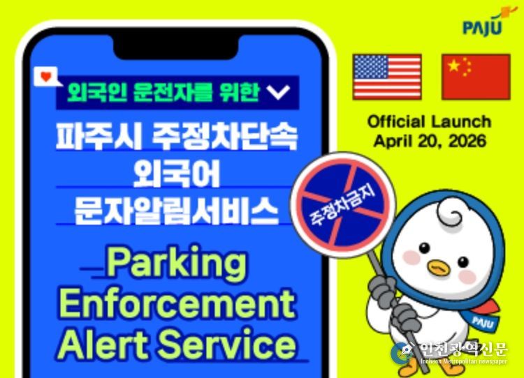 [인천광역신문] 최예준 기자 | 파주시는 4월 20일부터 외국인 운전자를 대상으로 한 ‘주정차 단속 외국어 문자 알림 서비스’를 시행한다.