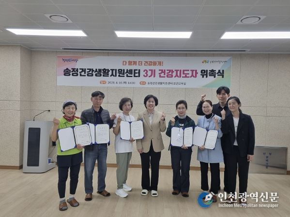 [인천광역신문] 최예준 기자 | 군포시 송정건강생활지원센터는 지난 4월 16일 건강지도자 양성교육 과정을 마친 주민 7명을 ‘제3기 건강지도자’로 위촉했다.