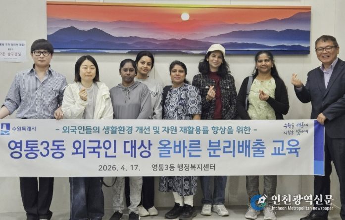 [인천광역신문] 최예준 기자 | 수원시 영통구 영통3동은 지난 17일, 외국인 주민의 생활환경 개선과 자원 재활용률 향상을 위해 관내 외국인을 대상으로 올바른 분리배출 교육을 실시했다.