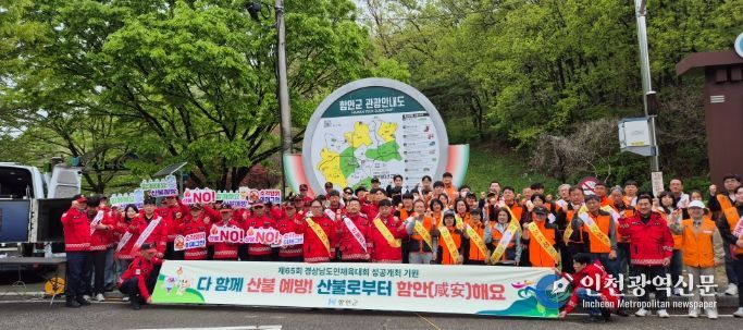 [인천광역신문] 최예준 기자 | 함안군은 지난 18일 입곡군립공원 일원에서 경남도와 관계기관(함안소방서, 함안전력지사, 함안군산림조합) 등 100여 명이 참여한 가운데 ‘함안군·경남도·관계기관 합동 산불 예방 캠페인’을 실시했다고 밝혔다.