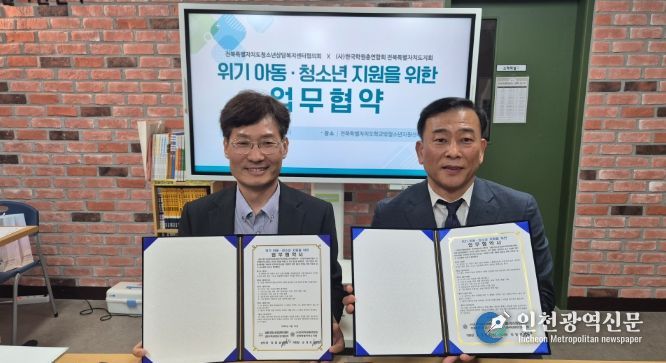 [인천광역신문] 최예준 기자 | 남원시청소년상담복지센터는 지난 4월 15일 한국학원총연합회 전북특별자치도지회(지회장 손경호)와 청소년 지원을 위한 업무협약(MOU)을 체결했다.