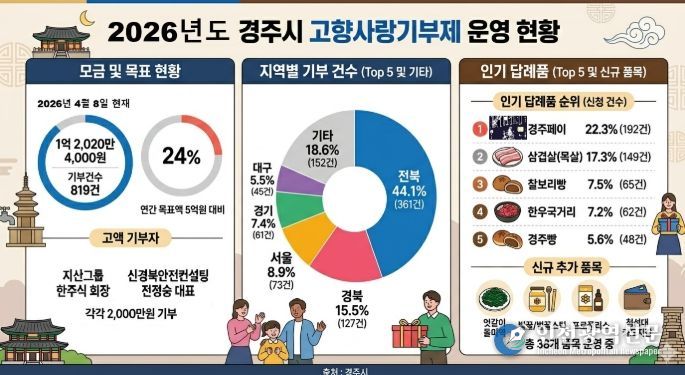 최혁준 경주시장 권한대행은 “고향사랑기부제는 지역과 기부자가 상생하는 제도”라며 “기부 참여 확대와 답례품 다양화를 통해 지역경제 활성화에 기여하겠다”고 말했다.