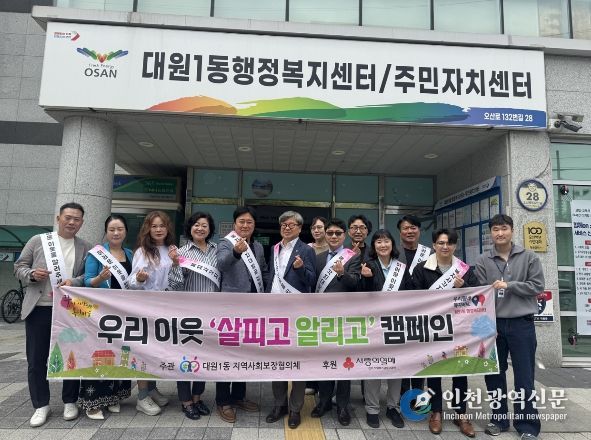 [인천광역신문] 최예준 기자 | 오산시 대원1동 행정복지센터는 지난 17일 원동 일대에서 복지사각지대 발굴을 위한 ‘우리 이웃 살피고 알리고’ 캠페인을 실시했다고 밝혔다.