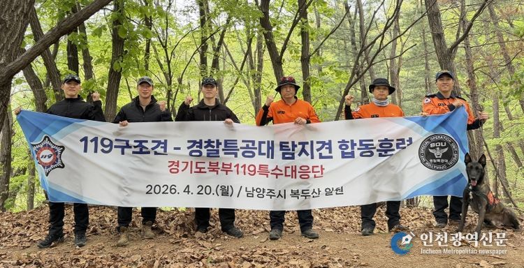 [인천광역신문] 최예준 기자 | 경기도북부119특수대응단은 20일 남양주시 복두산 구조견센터 훈련장에서 119구조견과 경찰특공대 탐지견이 참여하는 합동훈련을 실시했다.