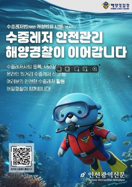 [인천광역신문] 최예준 기자 | 해양경찰청은 수중레저 사업장 증가와 이용객 증가에 「수중레저활동의 안전 및 활성화 등에 관한 법률」(약칭. 수중레저법)을 시행(4.23.)하며 수중레저 안전관리를 강화한다고 밝혔다.
