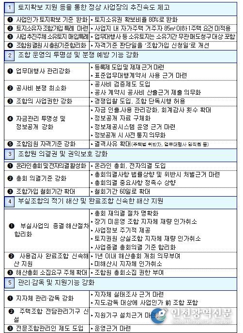 사업이 완료된 조합은 1년 이내 해산총회 개최를 의무화하고 정당한 사유없이 미해산 시 지자체가 직권으로 해산할 수 있는 근거도 마련한다.