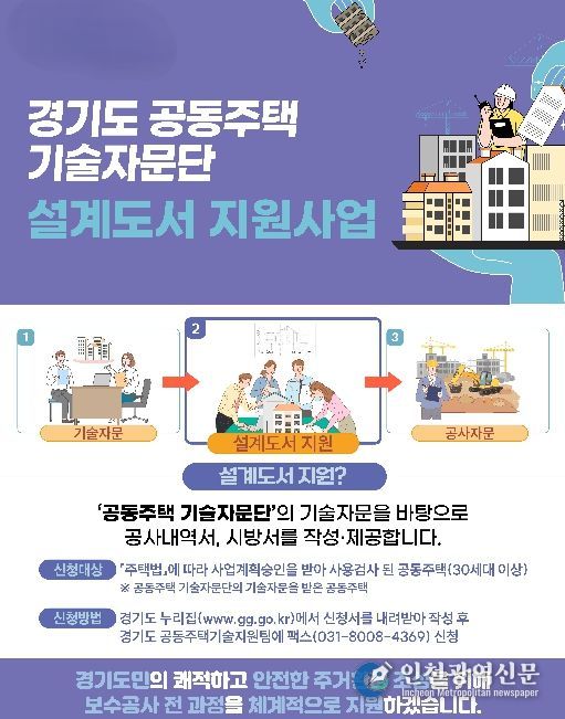 [인천광역신문] 최예준 기자 | 경기도는 아파트 공용부분 보수공사 시 전문 지식 부족으로 발생하는 관리비 낭비와 부실시공을 막기 위해 오산시 엘쿠르 아파트를 시작으로 ‘2026년 공동주택 기술자문단 설계도서 지원사업’을 본격 추진한다고 21일 밝혔다.